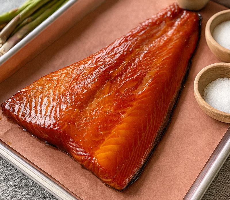 Se affumichi a caldo, il salmone sarà pronto quando raggiungerà una temperatura interna di circa 60°C (140°F). Il pesce deve essere tenero ma compatto, con una leggera sfumatura rosata all’interno. Se opti per l’affumicatura a freddo, la consistenza sarà più setosa e il salmone rimarrà crudo all’interno, ma profondamente aromatizzato dal fumo.