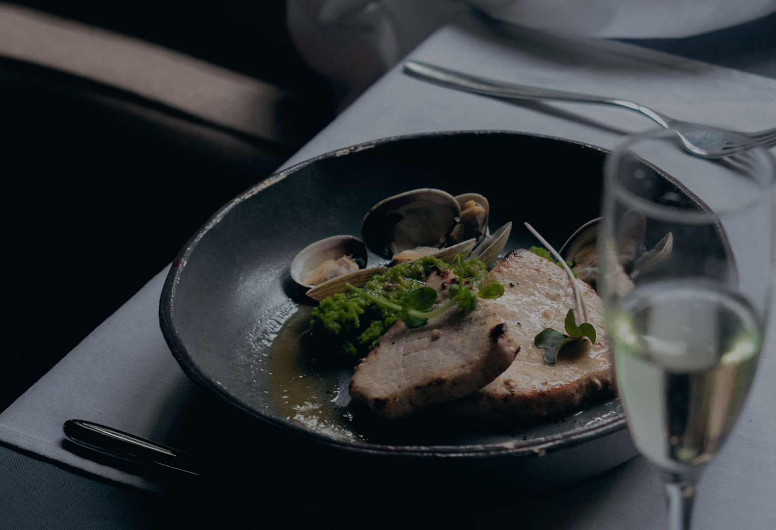 Saffron and mussel’s broth, new potatoes, edamame beans, olives