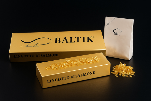 Per chi desidera un dono straordinario o un’esperienza fuori dal comune, nasce il Lingotto “Oro Baltiko”, la versione gioiello del nostro salmone affumicato, impreziosita da fogli d’oro edibile 23 carati.